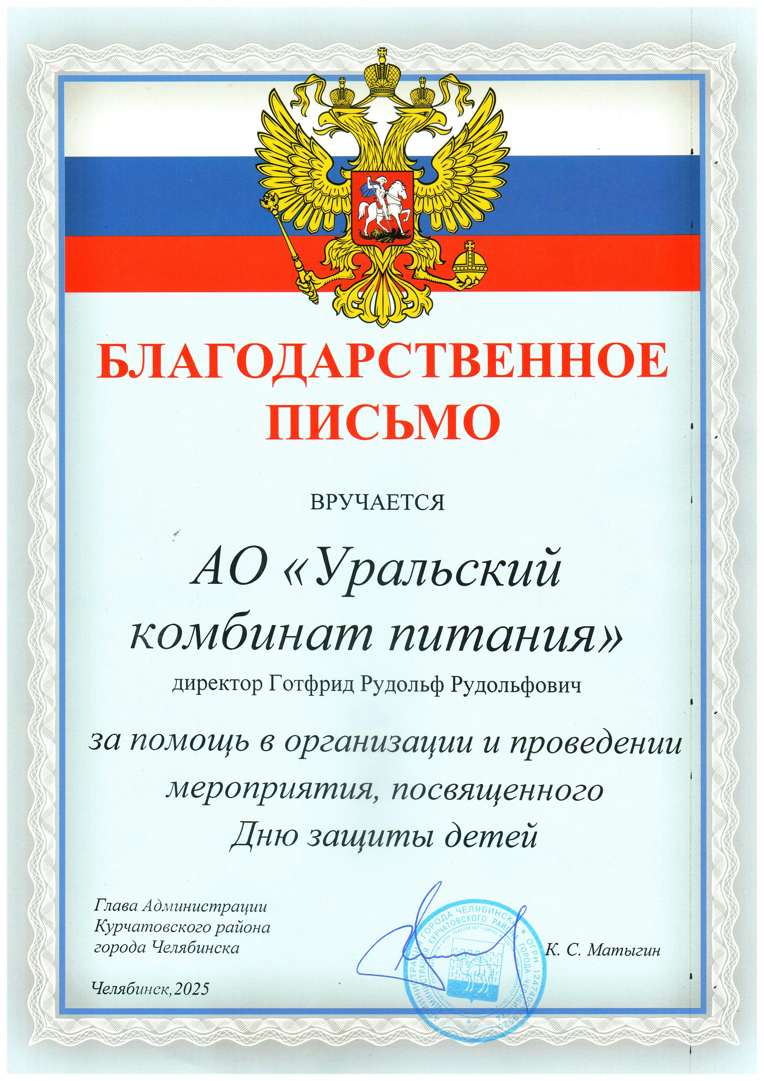 Приятно получить добрые слова благодарности от Главы администрации Курчатовского района Константина Матыгина!